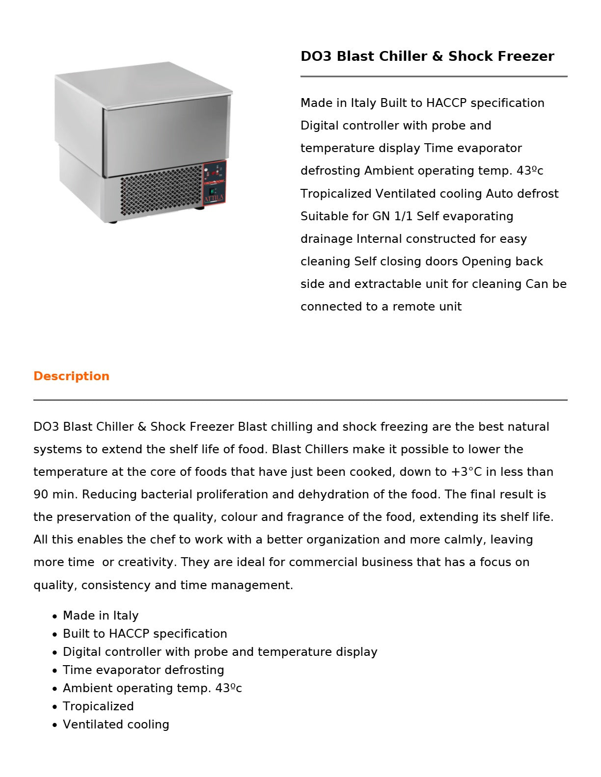 Tecnodom DO3 - Blast Chiller & Shock Freezer
